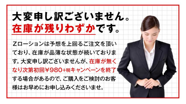 Zローションですが、店頭での販売はされていないのでインターネットからの購入のみ。