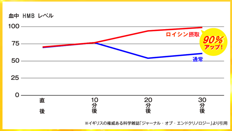このロイシンを摂取すると血中の「HMB」が90%もアップしたという臨床試験の結果も出ていました。