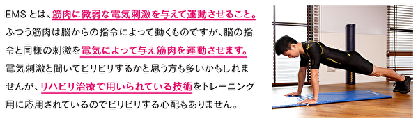 そのEMSを運動効果のサポートに利用しようとトレーニングウェアに組み込んだものが、