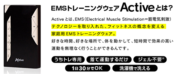 EMSトレーニングウェア『Active』は最新技術を搭載したハイテクなトレーニングウェア。