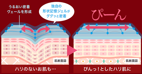 お肌にぴったり密着するこのジェルがお肌の潤いを長時間継続!