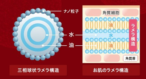 さらに!この美容成分を肌奥まで届けるために三相球状ラメラというカプセル処方を採用!