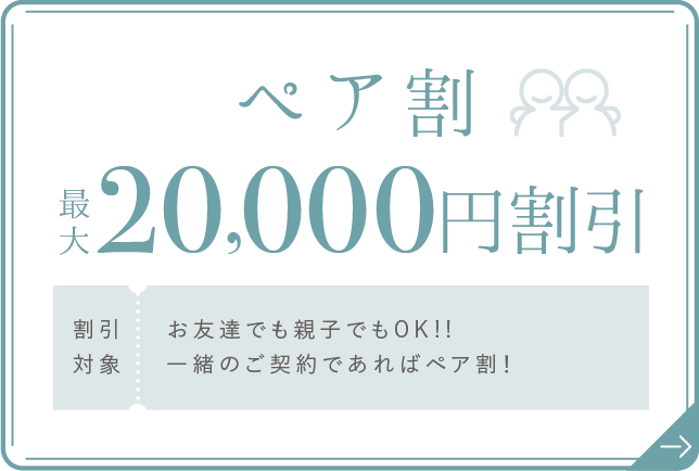 友達同士や親子で一緒に契約すると1人20,000円OFF(計40,000円OFF)で全身脱毛できるキャンペーンがあります!!