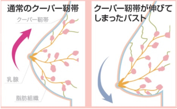 このクーパー靭帯は加齢とともに弱って伸びてしまうので、年をとると胸が垂れてしまうということです。
