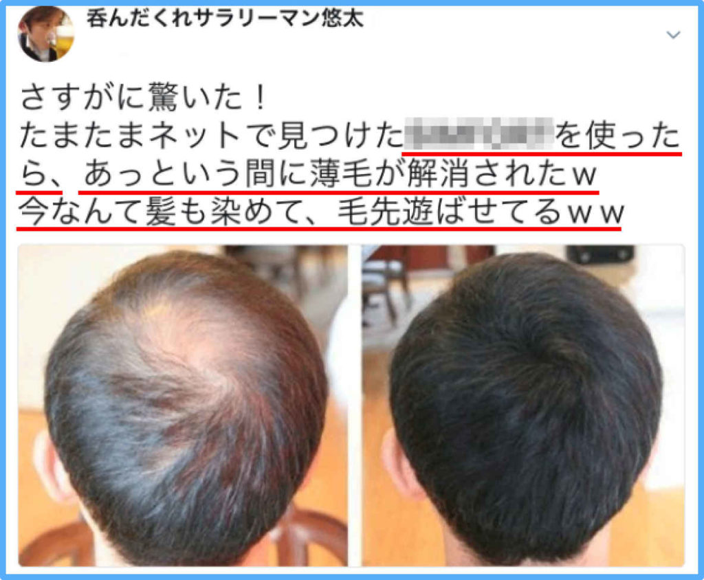 髪を●●で洗うだけで、こんな簡単に毛が増えるとは思いませんでした。