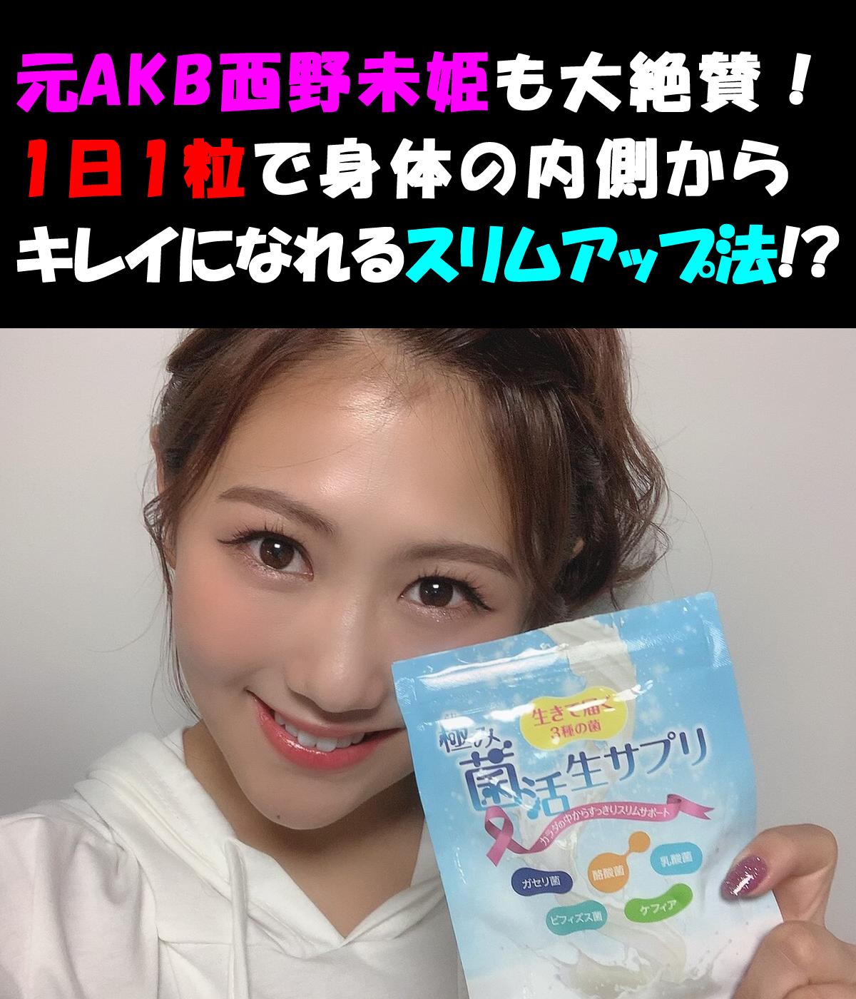 極み菌活生サプリを飲み続けているから、私もスリムになることができたんです💖