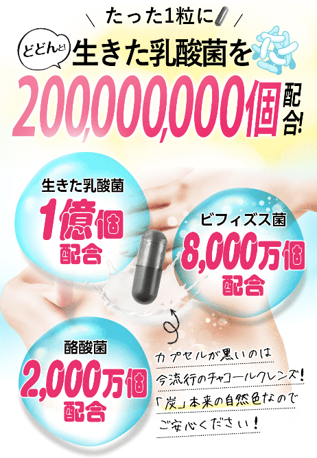 しかも200,000,000個も乳酸菌を配合してるから、お腹の中をキレイにしてくれちゃいます!