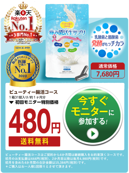 通常7680円がキャンペーンで480円となっている『極み菌活生サプリ』ですが