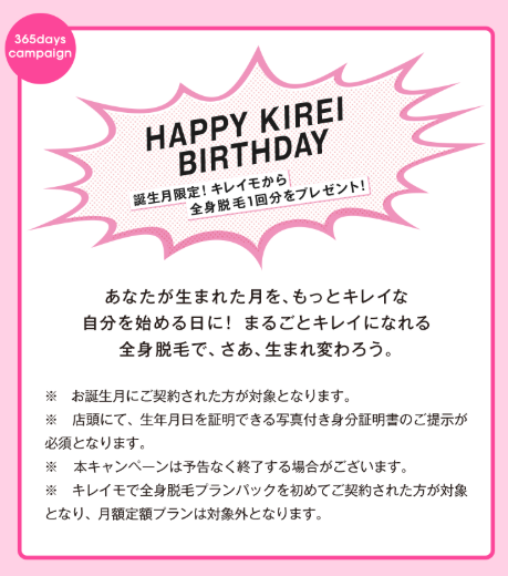 誕生月に始めたら全身脱毛1回分プレゼントのキャンペーンまで!