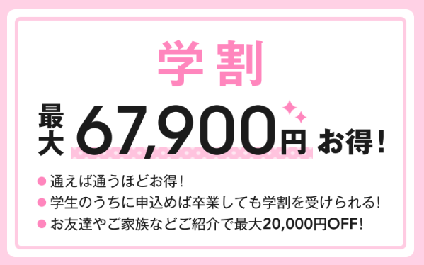 学割やのりかえ割でこんなに割引できちゃうところなんてキレイモ以外にないです!