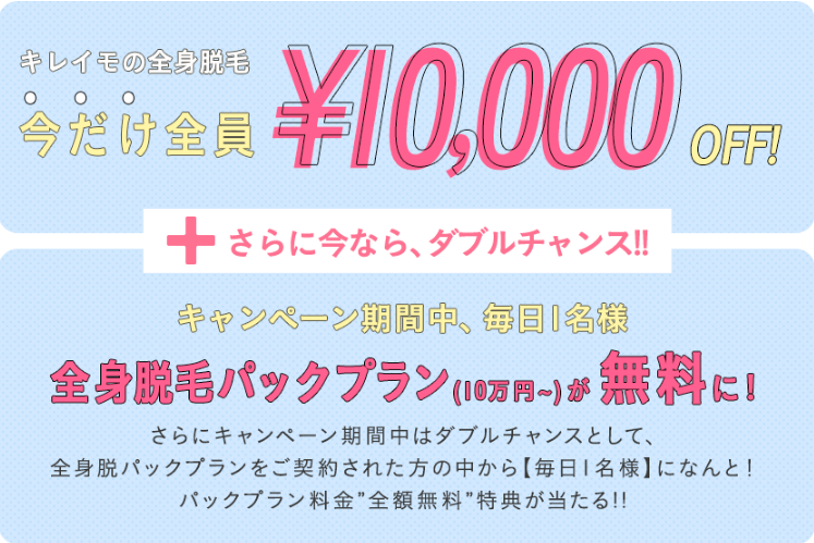 さらにキャンペーン期間中、毎日1名様に全身脱毛パックプラン料金”全額無料”が当たるかも!!