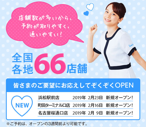 キレイモは人気の脱毛サロンですが、店舗数も多く、また施術時間が短いため、予約は取りやすいのが特徴です。