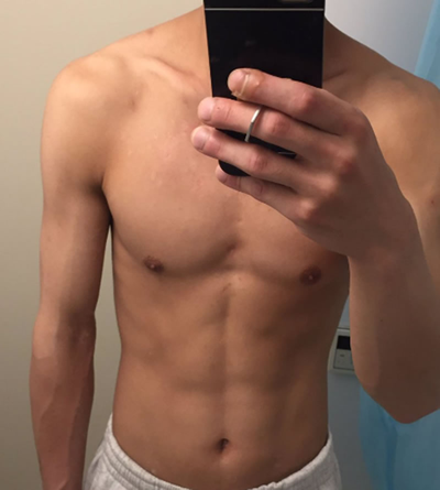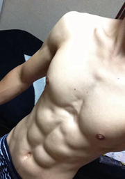 Y.Uさん (38)前まではビール腹でしたが今ではこんな身体に~!!HMB凄いですね♪最近は飲み忘れも結構多いのですが体型キープ出来てますし、健康診断でも良い結果が出ました…体質改善に繋がったのかも!妻も彼女も体を褒めてくれるし鍛神最高です!