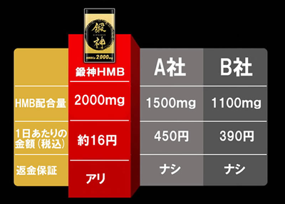もちろんHMB以外にも、モリモリつけた筋肉をキープするBCAAって成分も入ってるし