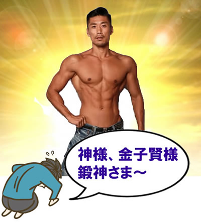 「そうそう、でもあのバキバキの体2ヵ月で作ったんだぞ笑 ほら、2ヵ月前の金子賢の写真」