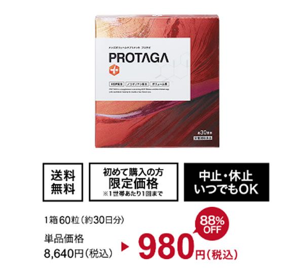 初めての方にも試しやすい、最新成分HGP配合PROTAGA