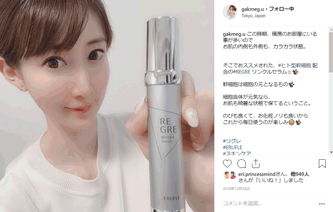 ヒト幹細胞エキス配合の内側から肌を潤す美容液【Regre(リグレ)】