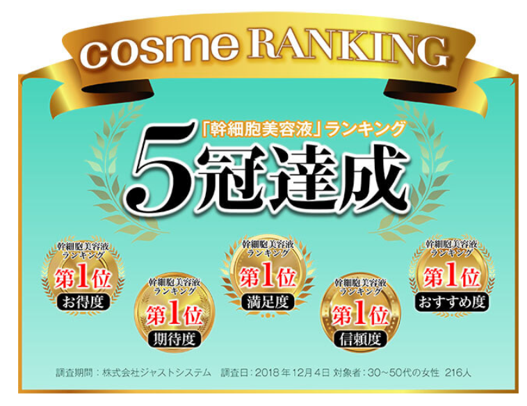 しかもなんと「幹細胞美容液」ランキングで5冠達成していたんです!