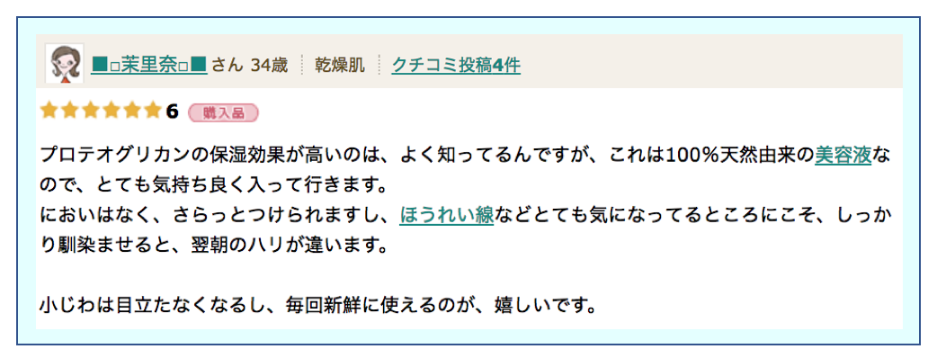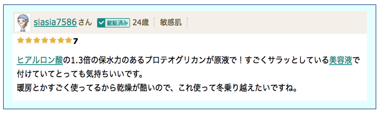 最近ではプロテオグリカンを使っている化粧品も多く出回るようになってきました。