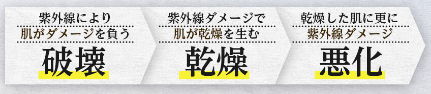 どれだけ肌に水分を与えたとしても、長時間その効果を維持できなと肌が紫外線に負けシミ・シワ・乾燥肌等の肌トラブルが発生します。。。