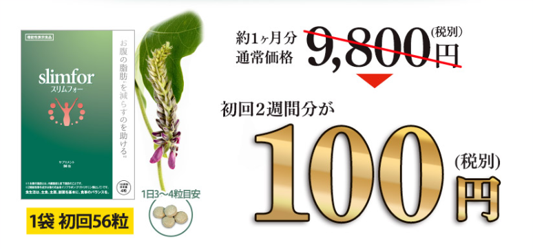 緊急実施!今ならスリムフォーが初回100円のみで試せます!