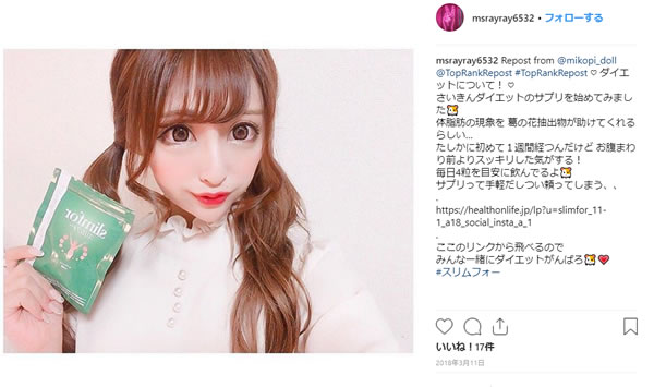 軽い運動や食事制限にプラスすることで効率的に脂肪減少を促す『スリムフォー』です!