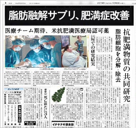 また、1つのサプリメントに脂肪注射約(メソセラピー)5本分の溶解効果を発揮することが、マウス実験により証明されています。