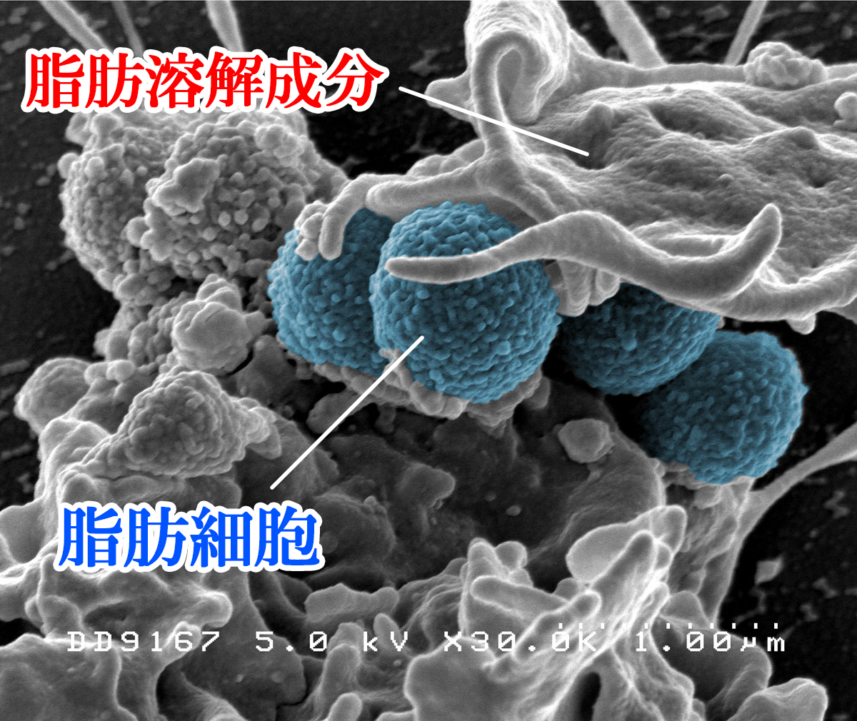 脂肪細胞にダイレクトに吸着し、復元不能のナノ粒子にまで分解・除去してくれます。