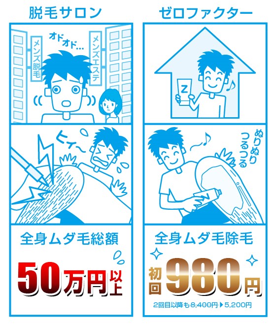 脱毛サロンに通った場合と比較すると、「費用、施術、通院」の全ての面で断然Zリムーバーがオススメです。